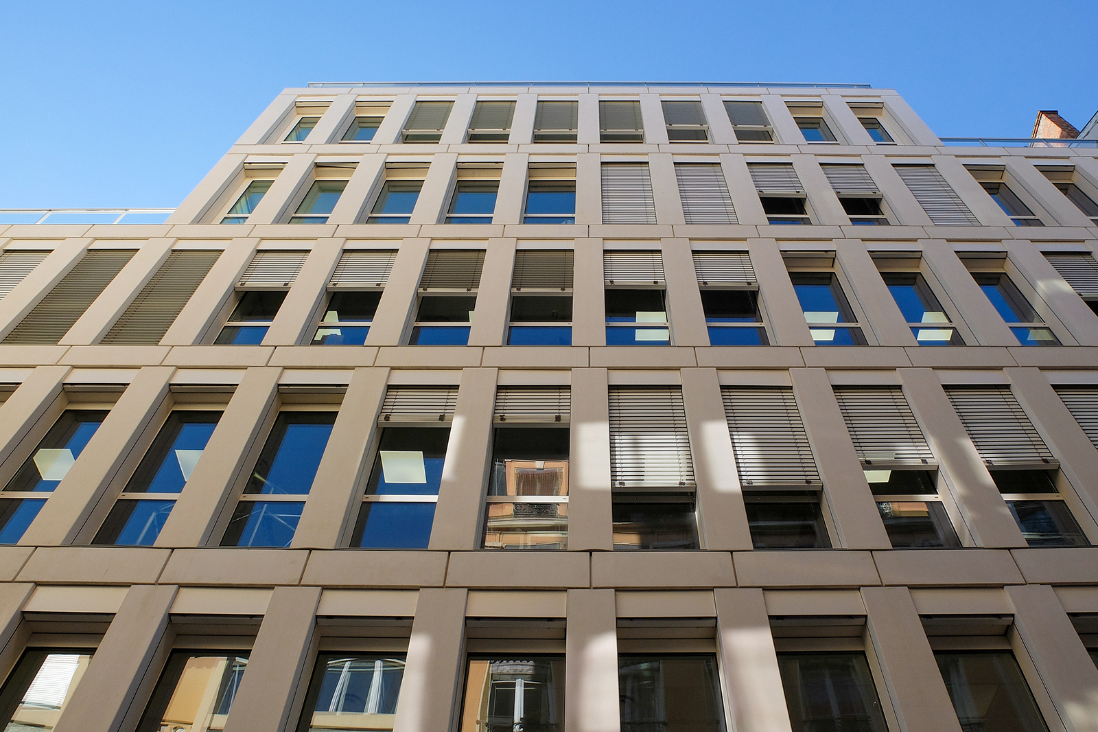 Situé le long des voies ferrées, le travail volumétrique mené développe une façade vitrine et dégage des vues variées depuis les bureaux. La stratégie de projet développe un principe de façade répétitif en béton préfabriqué porteur qui garantit la lecture de l’unité et de l’échelle du projet.