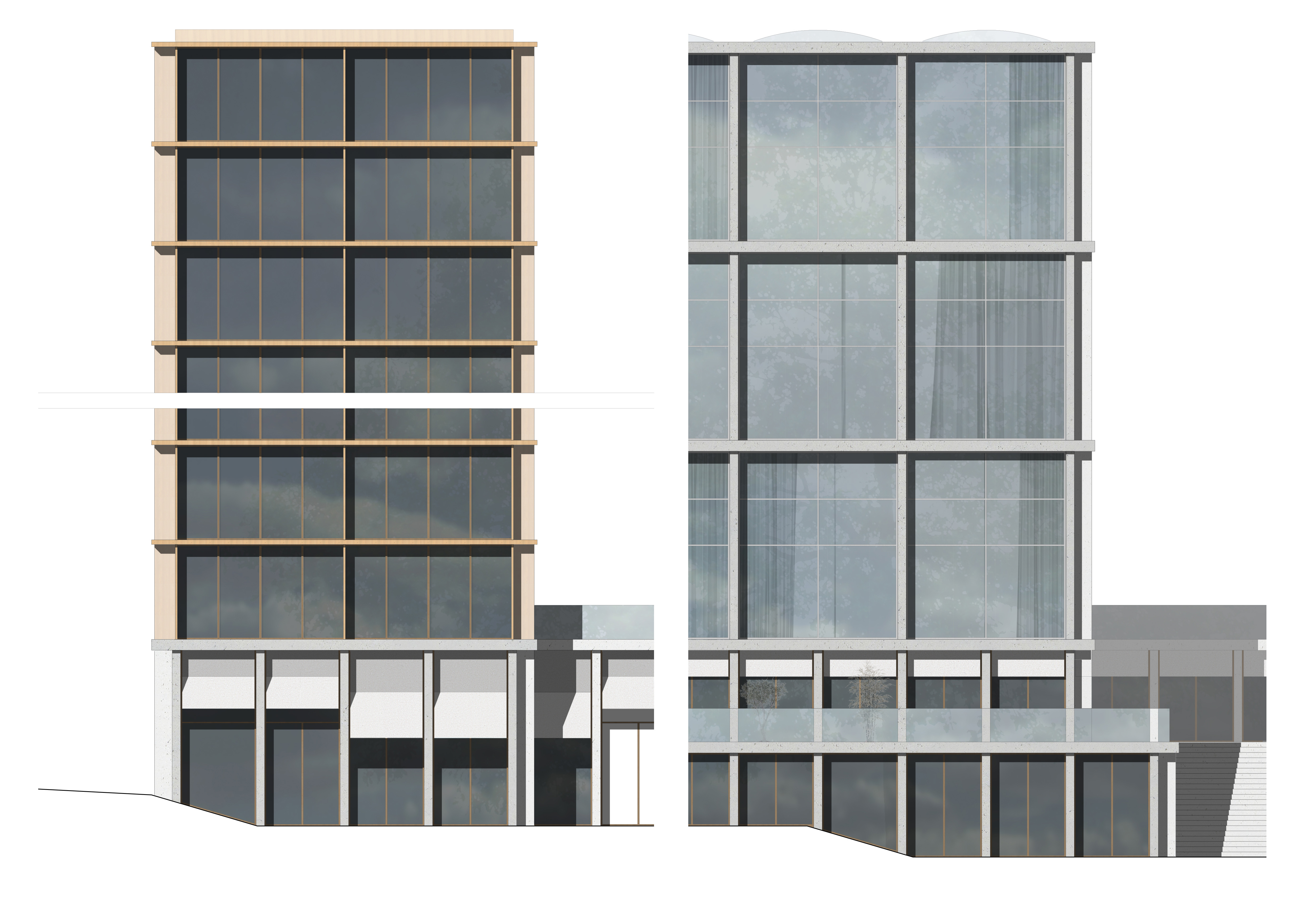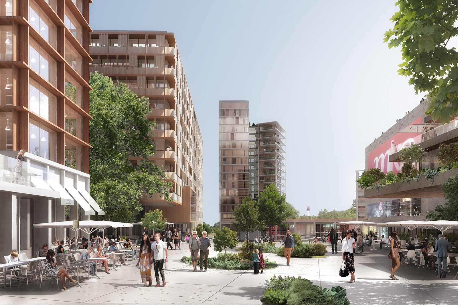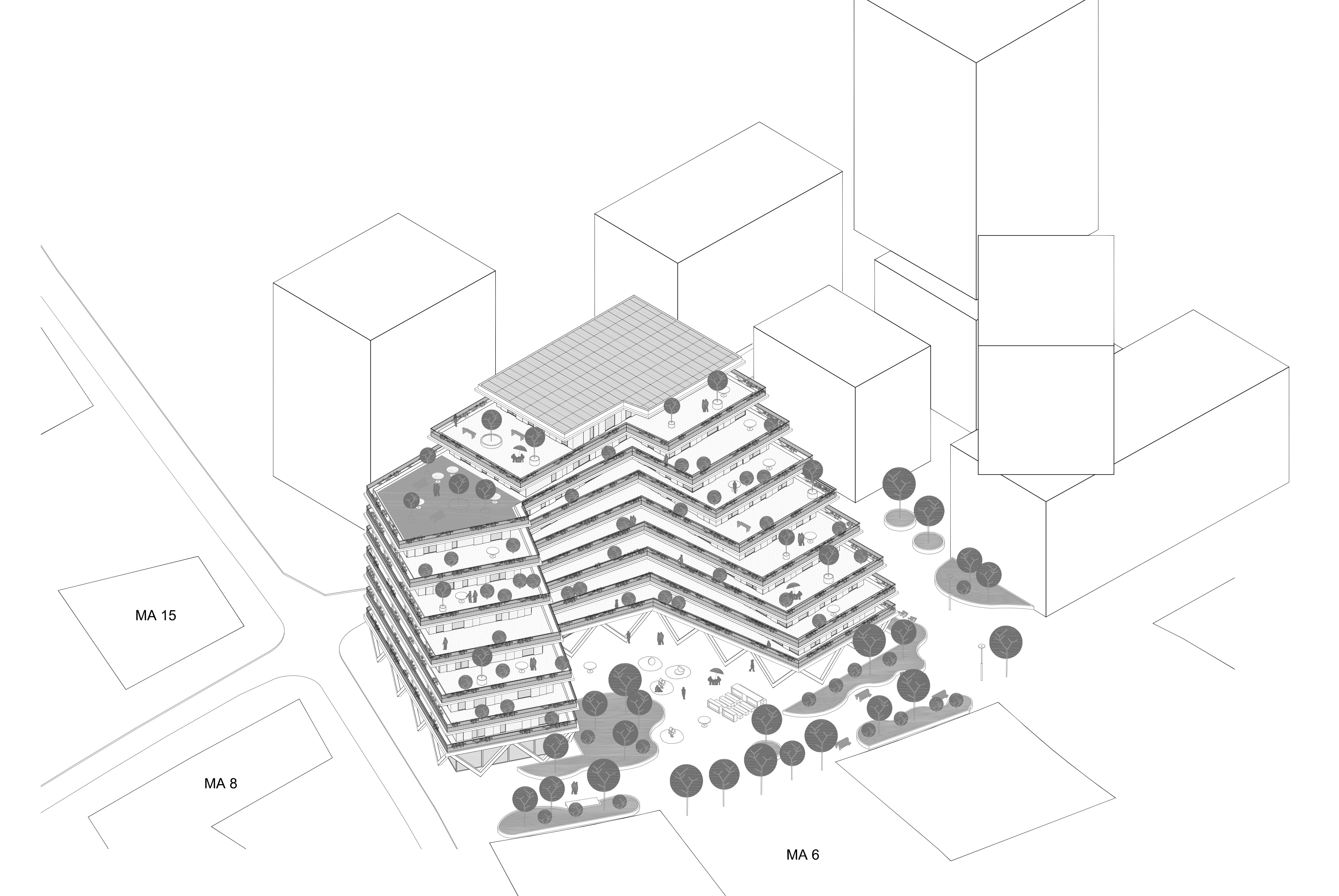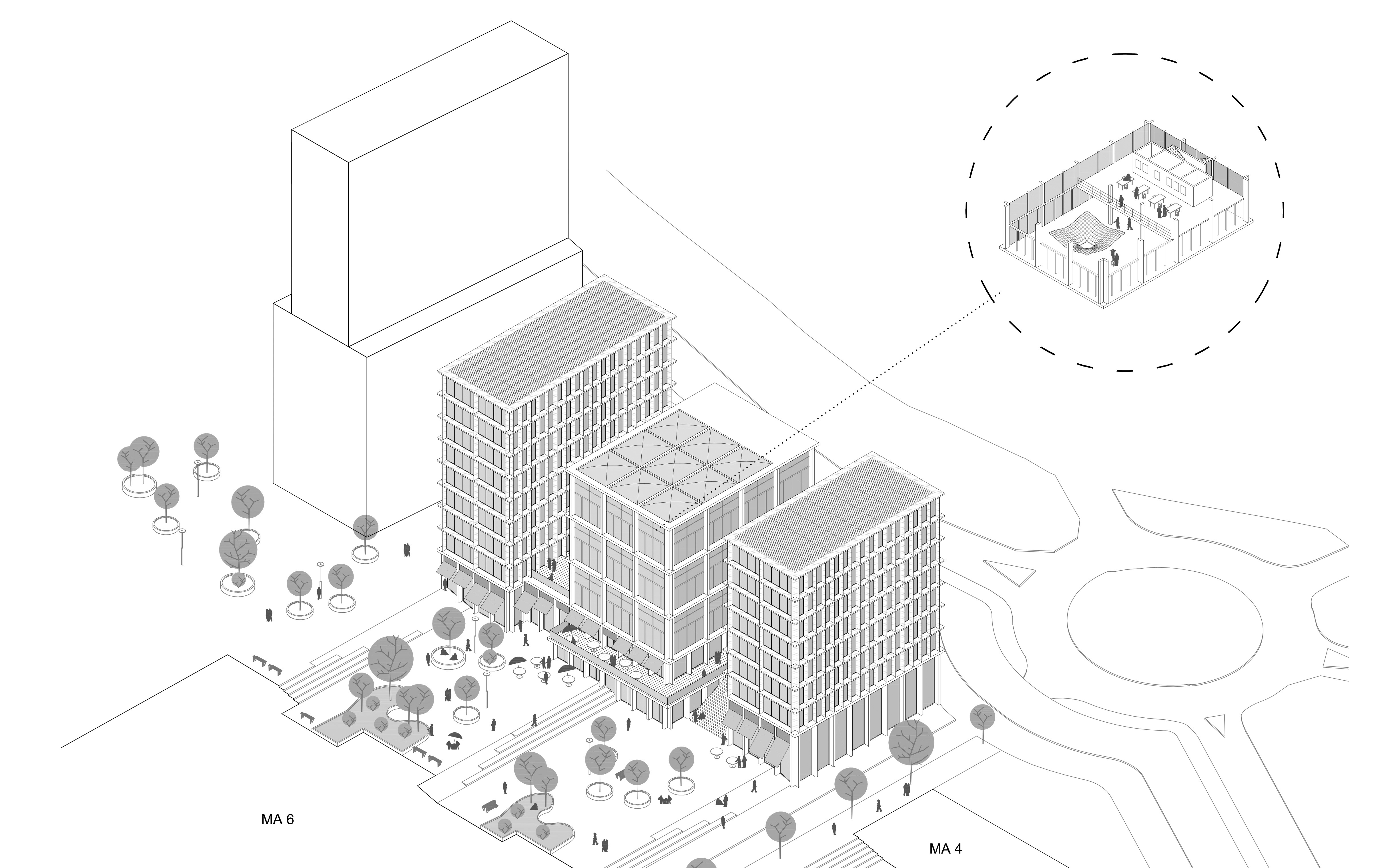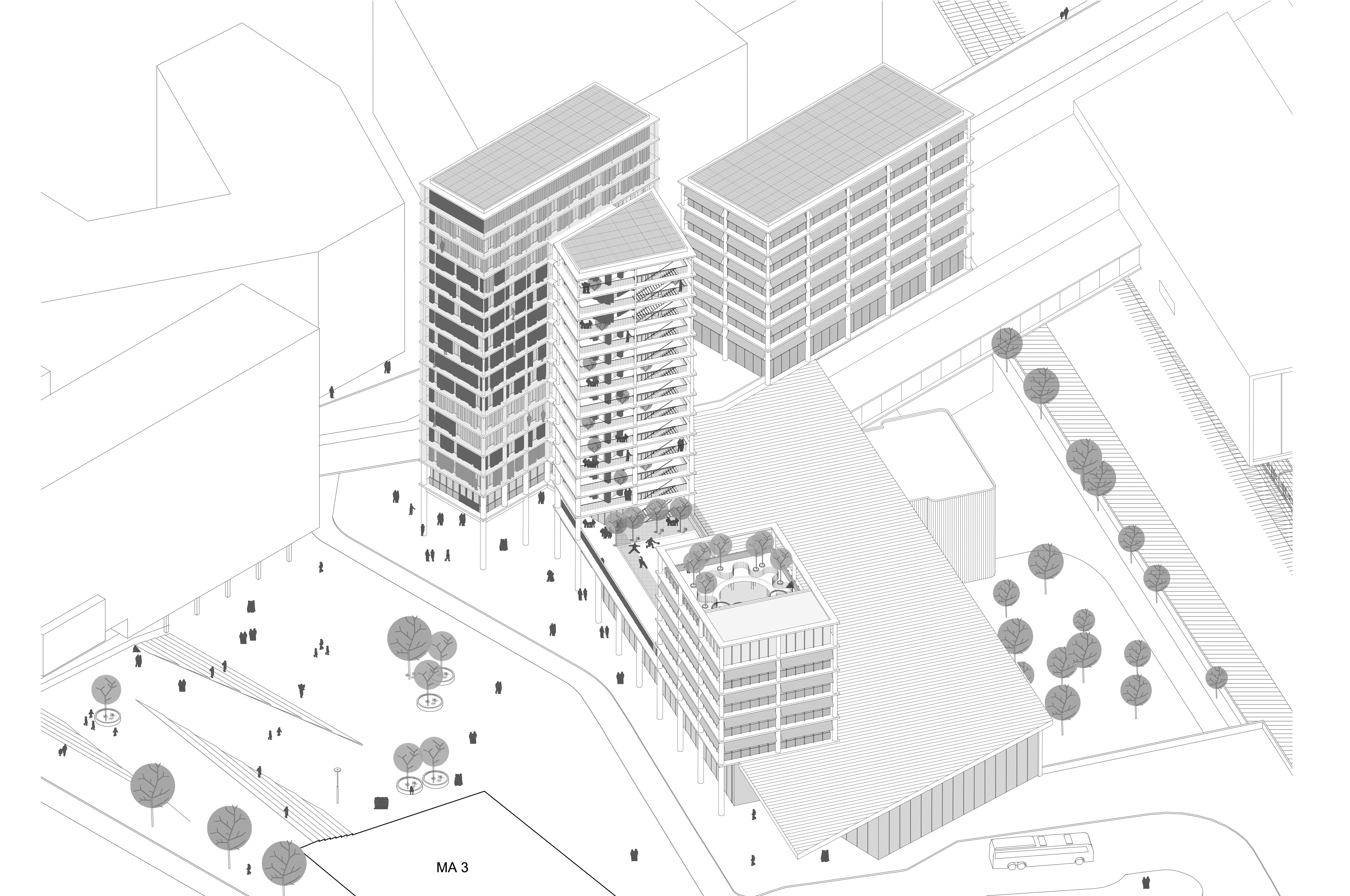 Elaboré dans le cadre du concours ‘‘Réinventons la métropole du Grand Paris’’, par les agences AAAVP architecture, BASE, Marc Barani Architectes, Aires Mateus e Associados, Hamonic + Masson & Associés et Véra & Associés, le projet urbain, intitulé ‘‘PanoraMarne’’, s’appuie sur le plan urbain dessiné préalablement par l’Atelier Ruelle. Sur un terrain anciennement en réserve pour le passage d’une voie rapide , et tirant parti du projet d’implantation d’une Gare du Grand Paris à la croisée des communes de Villiers-sur-Marne, Bry-sur-Marne et Champigny-sur-Marne, le projet propose l’établissement d’une mixité programmatique et d’une forte densité. Le projet est régi par un axe Nord-Sud, le ‘‘Jardin métropolitain’’, offrant un espace public qualifié par des commerces et activités en rez-dechaussée, et s’ouvrant sur de larges étendues végétalisés et apaisées dans lesquelles viennent s’ancrer les bâtiments dédiés au logement. La façade Est de l’ensemble, ouverte sur la voie de passage du bus ‘‘altival’’, qui accueille majoritairement des espaces de bureaux, est conçue dans une logique de sobriété, neutralité et d’expression qualitative de sa matérialité, essentiellement le bois. Une attention particulière est accordée à l’échelle du piéton.